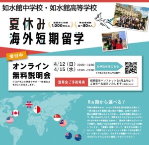 如水館生徒保護者の皆様へ 夏休み海外短期留学無料説明会のご案内